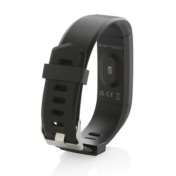 Vedenkestävä (IPX5) aktiivisuusranneke, jossa on mukava RCS-sertifioidusta kierrätetystä TPU-materiaalista valmistettu ranneke ja ABS-kehys (kierrätettyä materiaalia 35 %). 0,96” kosketusvärinäyttö, Bluetooth 5.0 ja ilmainen monikielinen sovellus (iOS 8.1 / Android 4.4+).