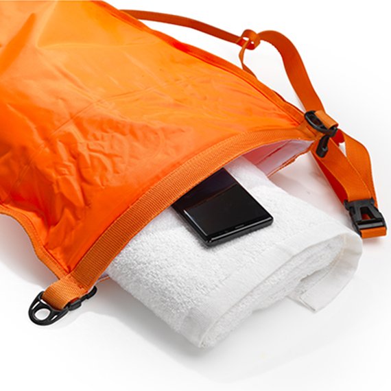 Kuivapussin ja retkiuintikellukkeen yhdistelmä kuljettaa tärkeimmät tavarasi kuivina järvenselän yli ja tarjoaa turvaa, jos tarvitset uinnin aikana hengähdystauon. Pakkaa juomapullo, avaimet ja puhelin, kiepsauta liepeet kiinni ja sulje. Täysin vesitiivis kuivapussi on nerokas varuste esimerkiksi avovesiuimareille, triathlonisteille, melojille ja suppailijoille. Se lipuu kevyesti mukana ja kannattelee tarvittaessa painoasi. Puhelimella tai paikannuslaitteella voit aina tarkistaa sijaintisi ja tiukan paikan tullen hälyttää apua. Kirkas väri varmistaa, että muut vesillä liikkujat huomaavat sinut varmemmin. Pussin vetoisuus 28 litraa.