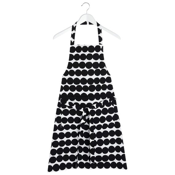 Räsymatto-kuvioinen esiliina on valmistettu paksusta puuvillasta. Siinä on etutasku, kolme painonappia, säädettävä niskanauha sekä solmimisnauhat, joilla esiliina on helposti muokattavissa sopivan kokoiseksi. Siirtolapuutarhaelämän innoittama Räsymatto liittyy ajankohtaiseen aihepiiriin, ekologisuuteen ja käsillä tekemisen iloon. Siirtolapuutarha kukka- ja vihannespenkkeineen on urbaania luontoa parhaimmillaan, ja räsymatto mökin lattialla kertoo omaa värikästä tarinaansa.