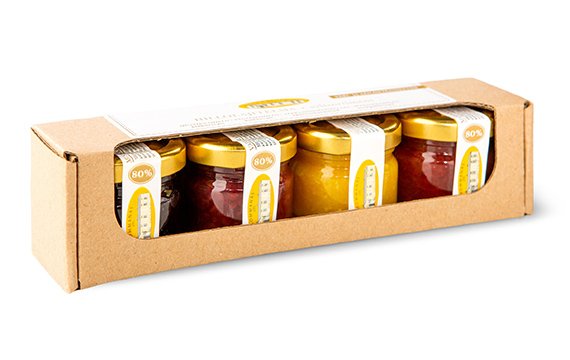 Lisä- ja säilöntäaineeton. Pakkaus sisältää neljä herkullista hilloa (80% marjaa) Makuina: vadelmahillo, mustikkahillo, mansikkahillo sekä appelsiinimarmeladi. 4x35g.