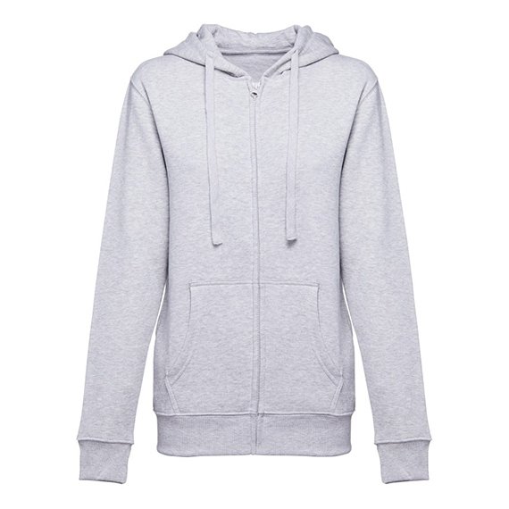 Naisten vetoketjullinen huppari kahdella kengurutaskulla ja usealla värivaihtoehdolla. Hupparin sisäpuoli harjattu ja hupussa kiristysnuori. Paino 320 grammaa. 50 % puuvilla, 50 % polyesteri. Koot S-2XL.
