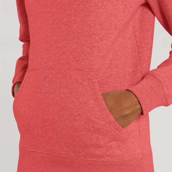 Huppari kierrätetystä polyesteristä (15 %) ja orgaanisesta, rengaskehrätystä kampapuuvillasta (85 %). Ryhdikäs, kaksikerroksinen huppu, metalliset narunreiät, pyöreät kiristysnarut metallisilla päillä ja kengurutasku edessä. Paino 350 g/m². Koot XXS-5XL.