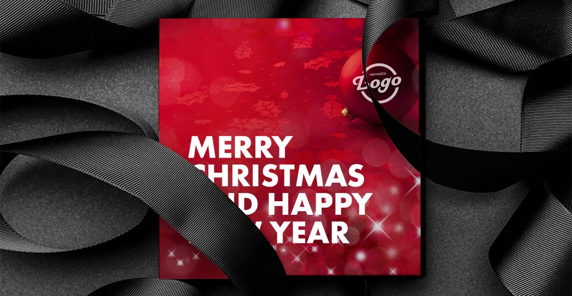 Kaksipuolinen, yksilöidysti suunniteltu joulukortti. Suunnittelemme juuri teidän yrityksenne näköisen joulukortin omalla tervehdyksellä. Kysy lisää mastermark@mastermark.fi.