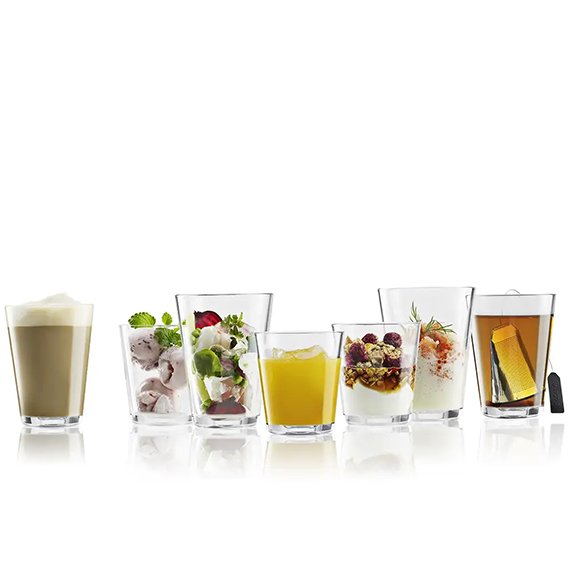 Lämmönkestävästä, karkaistusta lasista valmistettu 4 kpl lasisetti. Astiapesukoneen kestävä. Mitat 12 x 9 x 9 cm. Tilavuus 38 cl.
