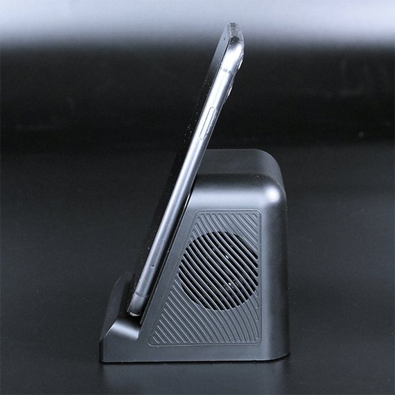 Kaiutin moneen tarkoitukseen! Kaiuttimeen on muotoiltu puhelimelle teline, jossa puhelimesi latautuu langattomasti samalla kun soitat lempimusiikkiasi. Yhdistät puhelimen helposti bluetoothilla (5.3). Pienen koon ansiosta kaiutin kulkee helposti mukana ja toimii langattomasti missä tahansa. Laseroi logosi eteen, joka hohtaa sisään rakennetun LED-valon ansiosta. Koko 96,5 x 84,5 x 92,8 cm.