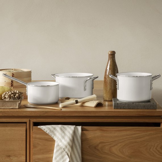 Ruostumattomasta teräksestä valmistettu tyylikäs valkoinen kattilasetti tuo näyttävää designia jokaisen keittiöön. Paksu pohja ja sivut jakavat lämmön nopeasti ja tasaisesti, joten ruokaa ympäröi tasainen lämpötila. Keraaminen pinnoite on astiapesukoneen ja uunin kestävä sillä se kestää jopa 450°C korkeita lämpötiloja. Setti sisältää: 1,8 L, 2,5 L sekä 3,8 L kattilat. Sopii jokaiselle liedelle.