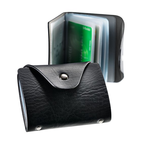 Tähän kätevään korttilompakkoon järjestät helposti tärkeät korttisi, ja säilytät ne takuulla järjestyksessä. Enää et joudu keräämään lompakon sisältöä kaupan lattialta yritettyäsi kaivaa korttia lompakosta! Muovitaskuissa säilyvät myös tärkeimpien yhteistyökumppaniesi käyntikortit hyvässä tallessa. Materiaali PVC-muovia. Koko 10 x 7,5 cm. Korttilompakossa on 20 kpl läpinäkyvää muovitaskua.