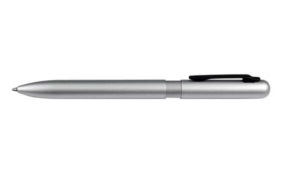 Hopean värinen alumiinista valmistettu kuulakärkikynä klipsillä. Sveitsiläinen 1,0 mm kuuläkärkikynä ja saksalainen laatumuste takaa erinomaisen jäljen. Musteen väri sininen.