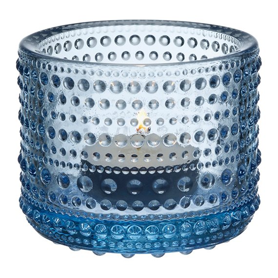 Kastehelmi-sarjassa yhdistyy muotoilija Oiva Toikan taiteellinen tutkimustyö ja läheinen suhde luontoon. Toikka halusi peittää puristelasiin jäävät saumakohdat. Kokeilujen tuloksena syntyi uudenlainen pisarakoristeluun perustuva pintastruktuuri, jonka loistavat lasihelmirivit muistuttavat aamuauringossa kimaltavia kastepisaroita. Kastehelmi-lasien pinnalla lasipisarat heijastavat kauniisti valoa. Rakastettuun Iittalan Kastehelmi-sarjaan kuuluu erikokoisia käytännöllisiä, toimivia ja koristeellisia lasiastioita. Kastehelmi-kynttilälyhdyn pehmeä valo luo huoneeseen lämmintä tunnelmaa. Tyylikäs vedensininen väri sopii kaikkiin sisustuksiin. Näyttävä yksinään tai ryhmänä.