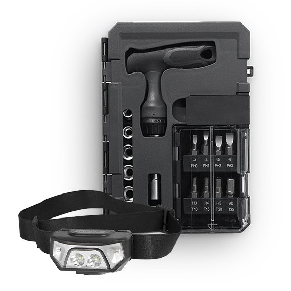 Tee pienet korjaukset ja harrastusvälineiden säädöt ammattilaisen tarkkuudella. Worker-työkalusetti pitää työkalut aina järjestyksessä ja helposti saatavilla. Kätevän kokoisessa setissä on räikkäväännin, kolmiportainen jatkettava varsi ja kiinnityspala hylsyille. Mukana tulee kuusi 5-10 mm hylsyä ja 15 CRV-ruuvauskärkeä (Phillips, talttapää, Hex ja Torx).
