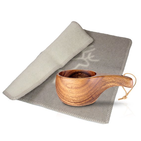 Lahjasetti yhdistää lämpimän porokuvioidun villaistuinalustan ja kauniin akaasiapuusta valmistetun kuksan, jotka tuovat luonnon rauhaa ja aitoa pohjoista tunnelmaa jokaiseen hetkeen. Täydellinen valinta retkille, metsähetkiin tai kodin tunnelmointiin.