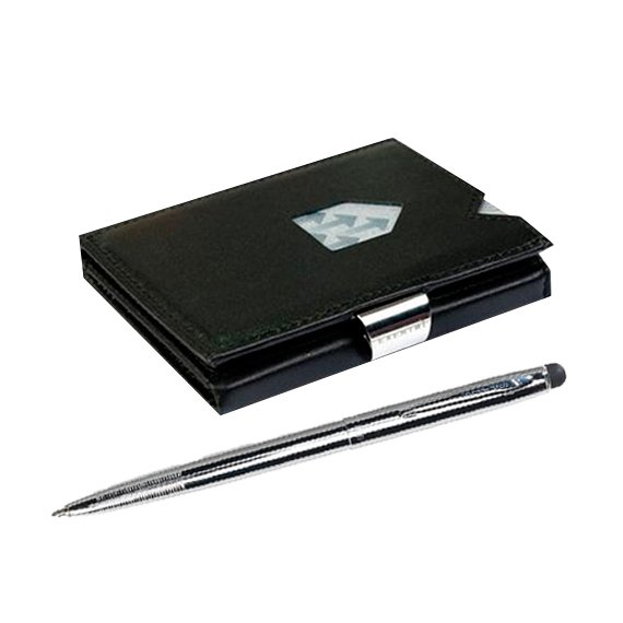Lahjasetti sisältää rfid suojaton korttilompakon sekä innovatiivisen kuulakärkikynän.