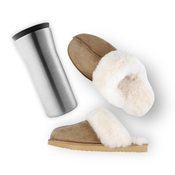 Virittäydy päivään hitaasti nautiskellen. Sujauta pehmoiset aidosta lampaan mokasta valmistetut tohvelit jalkaan ja kaada aamukahvit laadukkaaseen ruostumattomasta teräksestä valmistettuun termosmukiin.