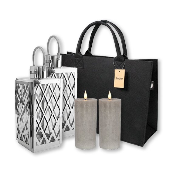 Lahjasetti sisältää kaksi eleganttia Linnea-lyhtyä, kaksi turvallista LED-kynttilää ja mustan huopakassin, joka toimii tyylikkäänä lahjapakkauksena. Setti luo lämpimän ja rauhoittavan tunnelman sisälle – täydellinen valinta pimeneviin iltoihin.