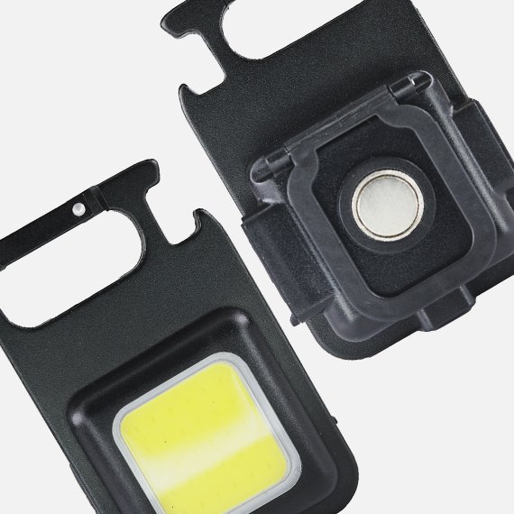 Ladattava 400 Lumenin LED-valo 500 mAh Li-polymeeriakulla. Kiinnitä lamppu karabiinikoukun avulla vyölenkkiin tai magneetin avulla helposti metallipintaan. Lampun sivussa pullonavaaja ja takana jalusta, joka pitää lampun pystyssä. Lampun latausaika on 3 tuntia ja käyttöaika on 3-4 tuntia. Tuote sisältää USB C latauskaapelin. Mitat 73 x 45 x 21 mm. Paino 48 g.