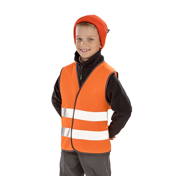 EN1150-89/686/EEC -sertifioitu huomioliivi, joka pitää lapset näkyvillä ja turvassa. Väljä malli, jota voidaan käyttää päällysvaatteiden päällä. Huomio-ominaisuus kestää 20 pesukertaa. 100 % polyesteri, 120 g/m². Koot 121 cm (4-6 v), 140 cm (7-9 v) & 158 cm (10-12 v).