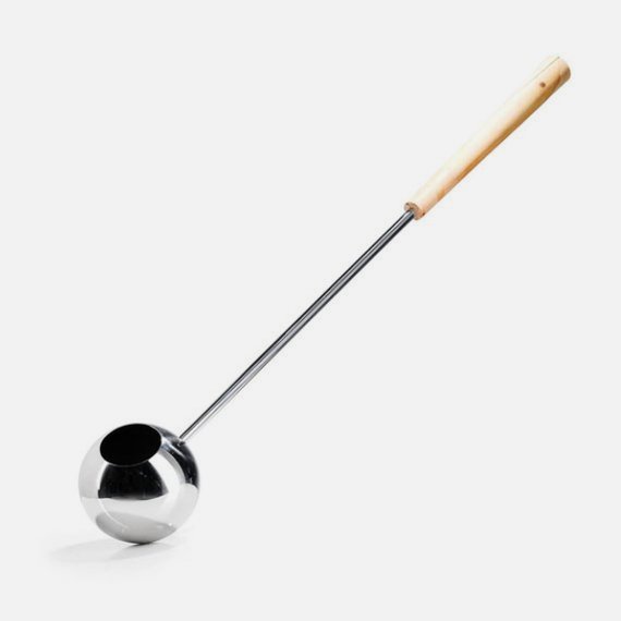Ainutlaatuinen pallolöylykauha on valinta pyöreän pehmeille löylyille ja leppoisan kiireettömille hetkille. Löylykauha on hienostunut yhdistelmä puuta ja ruostumatonta terästä, pitkä puinen kädensija on kumipuuta. Löylykauha on lahjapakkauksessa. Heitä pallo verkkaisille saunailloille. Tuote on EY-mallisuojattu (RCD) 002247965-0001. Pituus 70 cm.