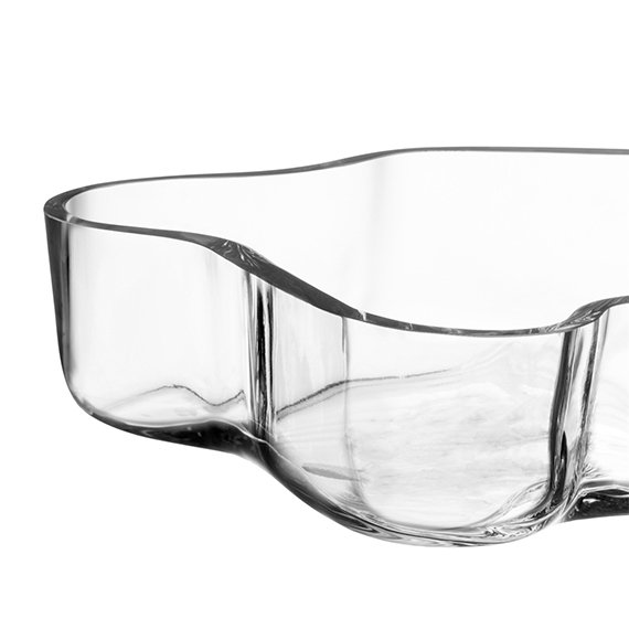 Alvar Aallon luomasta epäsymmetrisesti aaltoilevasta muodosta on tullut yksi modernin pohjoismaisen muotoilun klassikoista vuoden 1937 Pariisin maailmannäyttelyssä saadun kansainvälisen huomion jälkeen. Suomalaisen luonnon vaikutteet näkyvät Aallon klassikkoesineissä, joissa veistoksellinen muoto yhdistyy funktionaalisuuteen. Jokainen kulho valmistetaan yksittäin monivaiheisessa tuotantoprosessissa Iittalan lasitehtaalla. Lasiesine suupuhalletaan, irrotetaan lasimassasta käsin katkaisemalla ja hiotaan lopulliseen muotoonsa. Kirkas Aalto-kulho on raikkaan moderni sisustusesine, joka soveltuu myös kattaukseen. Se on kaunis lahjaesine tai tarjoiluastia kuiville elintarvikkeille, kuten hedelmille tai makeisille.