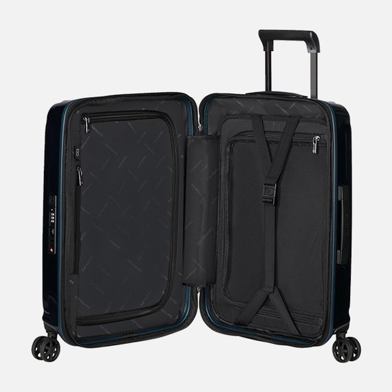 Tyylikäs sekä kierrätetyistä materiaaleista valmistettu nelipyöräinen laajennettava matkalaukku. Laukussa on paljon pakkaustilaa ja hiljaiset ja tärinää hillitsevät pyörät, mitkä tekevät siitä oivan matkakumppanin. Sivulta löytyy turvallinen vetoketju ja TSA008-numerolukko, jolla saat suojattua matkatavarasi sekä USB-portti, josta voit ladata laitteesi. Laukkua voit kuljettaa joko päältä tai sivulta löytyvistä kahvoista. Matkatavarasi saat eroteltua taskullisella tilanjakajalla ja säädettävillä henkseleillä. Irrotettavan ja pestävän vuoren ansiosta saat pidettyä laukun puhtaana. Mitat 55 x 40 x 20 cm. Tilavuus: 38/42 L (keskimääräinen pakkauspaino n. 10 kg). Materiaalit: polykarbonaatti (ulkokuori), 100 % kierrätetty kestomuovi (vuori).