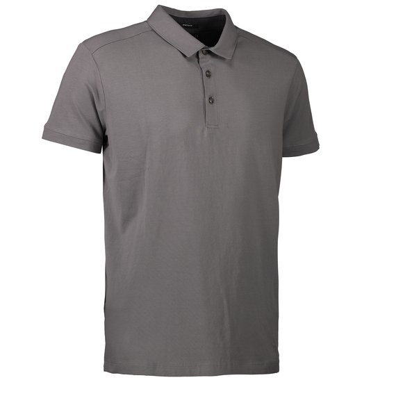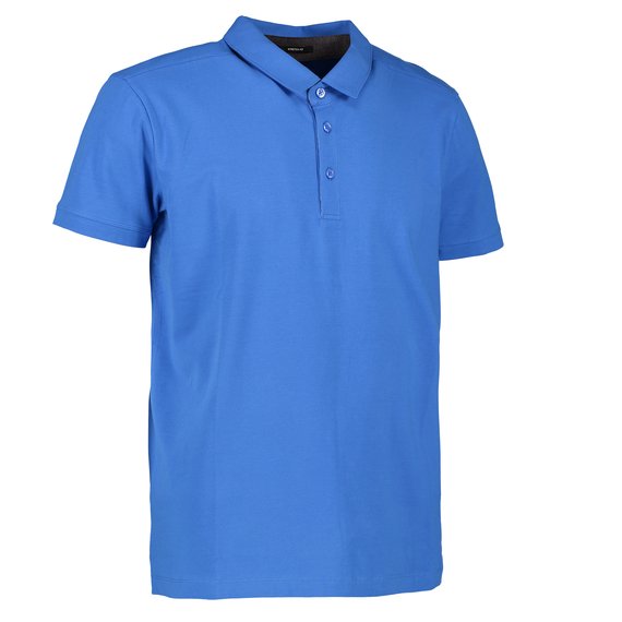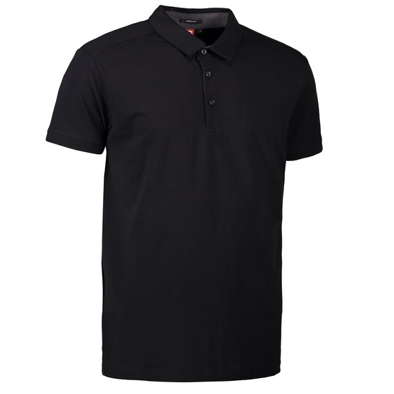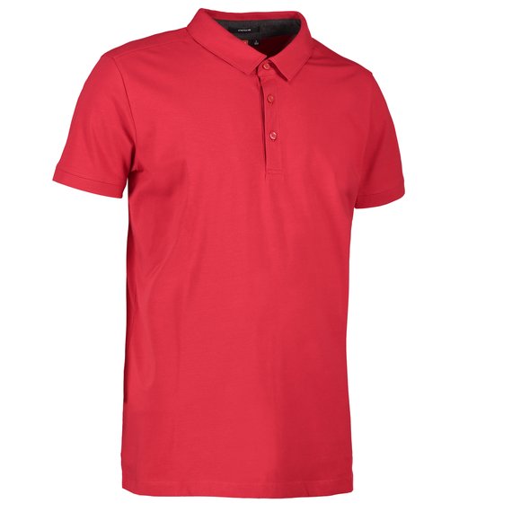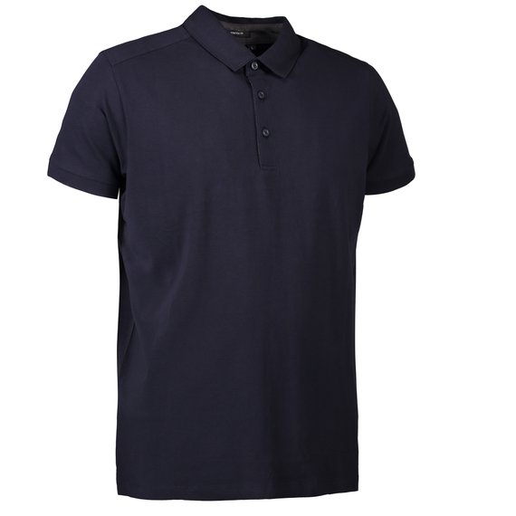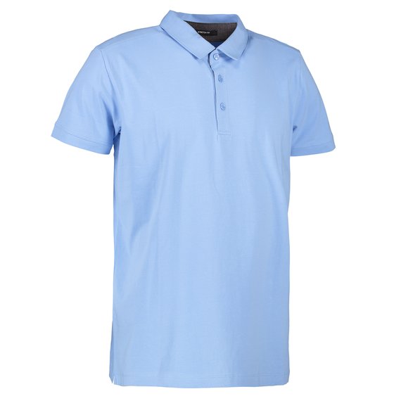 Business, single jersey stretch polo shirt with stylish collar stand. Sleeves are finished with a firm cuff made of the same material. Elegant contrast fabric inside on collar stand and front placket. Button closure with attractive two-tone matching buttons. Small elegant slit in side seam. Stretch quality is light and soft and offers greater comfort and freedom of movement.