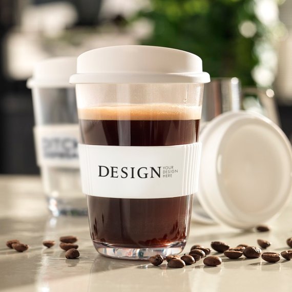 Take-away muki roiskumattomalla kannella ja silikonisella oterenkaalla. Kirkas muki on tyylikäs, mutta kestävä. Se on konepestävä ja mikroaaltouunin kestävä, joten et tarvitse erillistä astiaa esimerkiksi kaakaon lämmittämiseen. Tilavuus 300 ml, korkeus 12,4 cm, halkaisija 8,6 cm ja paino 109 g. Valmistettu SAN- ja PE muoveista ja silikonista. BPA-vapaa. Hinta sisältää yksiväripainatuksen. Toimitusaika n. 3 viikkoa.