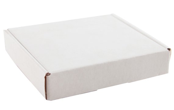 Valkoinen pakkaus. Sisämitat 153 x 130 x 31 mm.