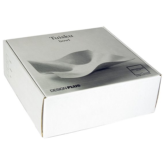 Valkoinen lahjapakkaus isolle 500x500 mm Tuisku-vadille. Pakkauksen mitat 520 x 520 x 120 mm.