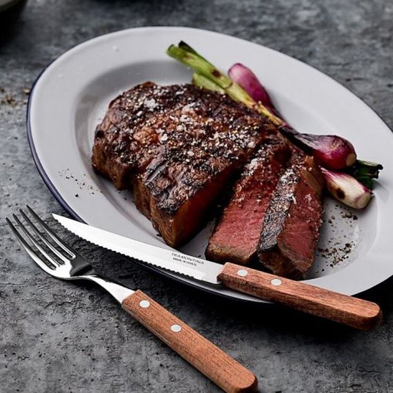 Tyylikkäät aterimet tuovat tunnelmaa niin arkeen kuin juhlakattaukseenkin. Tramontina Churrasco -setti sisältää 6 kpl haarukoita ja 6 kpl sahateräisiä pihvi-/pizzaveitsiä, jotka voi puukahvasta huolimatta pestä astianpesukoneessa. Kahvassa käytettävä Polywood on komposiittimateriaali, joka koostuu puuviiluista ja hartsista. Viilut pinotaan päällekkäin ja kyllästetään hartsilla, jonka jälkeen ne puristetaan tiiviisti yhteen ja hartsi kovetetaan lämmittämällä. Tällä menetelmällä puun luonnollinen ulkonäkö pystytään säilyttämään samalla kun jokainen viilu peitetään polymeerimateriaalilla, joka suojaa puuta kosteudelta ja mikrobeilta, ja tekee tuotteesta konepesun kestävän. Polywood-materiaali valmistetaan FSC-sertifioidusta männystä, metalliosat ovat ruostumatonta terästä. Rajoitettu takuu 5 vuotta.
