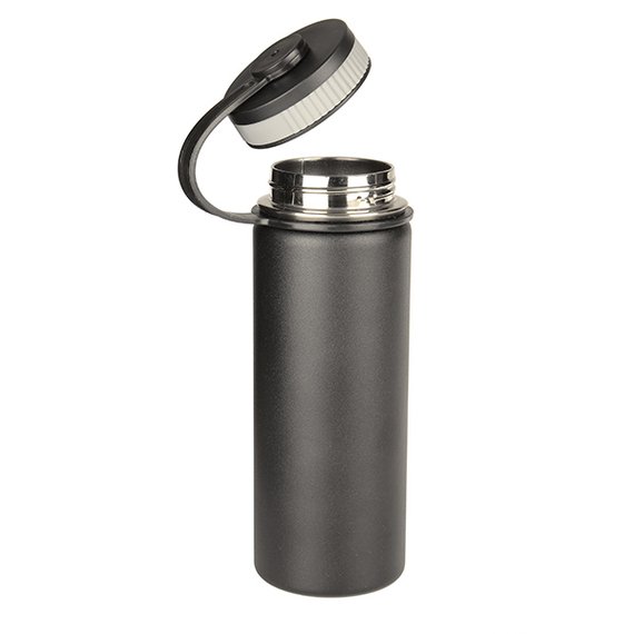 Juomapullo, joka pitää juomasi pidempään kylmänä tai kuumana. Steel-juomapullossa on kaksiseinäinen rakenne, joten se eristää ja pitää juomasi raikkaan viileänä tai höyryävän kuumana kauemmin. Jämäkän juomapullon pinta on mustaa, mattapinnoitettua ruostumatonta terästä. Pintamateriaalin ja logokaiverruksen yhdistelmä tekee juomapullosta arvokkaan oloisen. Korkki on PP-muovia ja silikonia. Suosittelemme käsinpesua. 500 ml.
