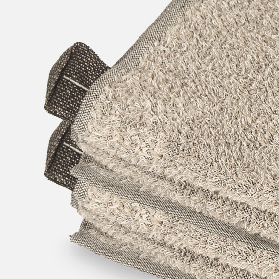 Suomalaiseen kotiin ja saunaan sopiva pyyhe on tuntumaltaan mukavan karkea ja erittäin imukykyinen. Harmaanruskea väri on lämmin ja kotoisa. Pyyhkeen ripustuslenkit ovat tukevat ja näyttävät. Pyyhkeeseen saa upeasti logon tyyliin sopivasti brodeerattuna tai tyylikkäästi erillisellä kangasmerkillä. Materiaali on laadukasta froteeta, jossa on 60 % pellavaa ja 40 % puuvillaa, ripustuslenkit ovat 100 % pellavaa. Pyyhkeet kestävät konepesun jopa 60 asteessa. Huomaathan, että pellavalle ominaiseen tapaan, tuote saattaa pesussa pienentyä kooltaan hieman, kuitenkin maksimissaan 10 %. Design from Finland. Valmistettu Liettuassa. Koko: 50 x 75 cm.