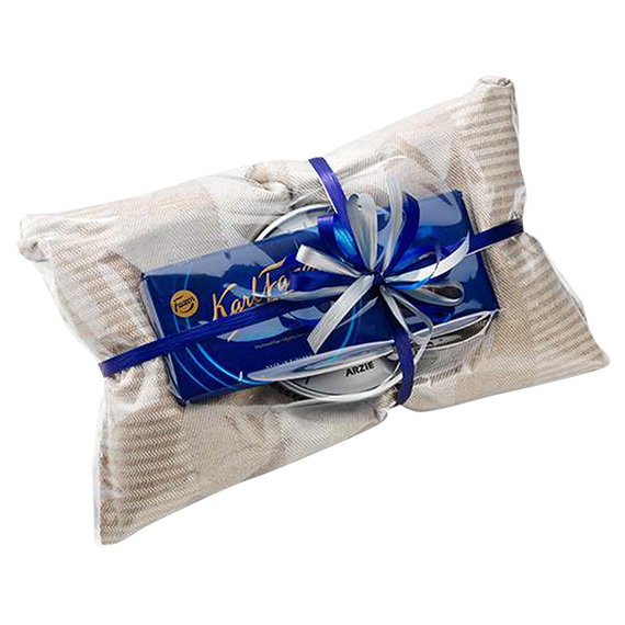 Lauantai-illan hämy, lämmin sauna ja leffailta. Sellofaaniin pakatussa sauna-aiheisessa lahjasetissä on pellavainen Arzie-saunatyyny pään alle tai hartioiden tueksi. Tyyny sopii myös hyvin kylpy- tai poreammeen reunalle. Tyylikäs teräksinen Arzie-löylymittari näyttää lämpötilan selkeällä asteikolla. Saunasetin silaus on suomalainen kestosuosikki, Fazerin sininen 200 g maitosuklaalevy.