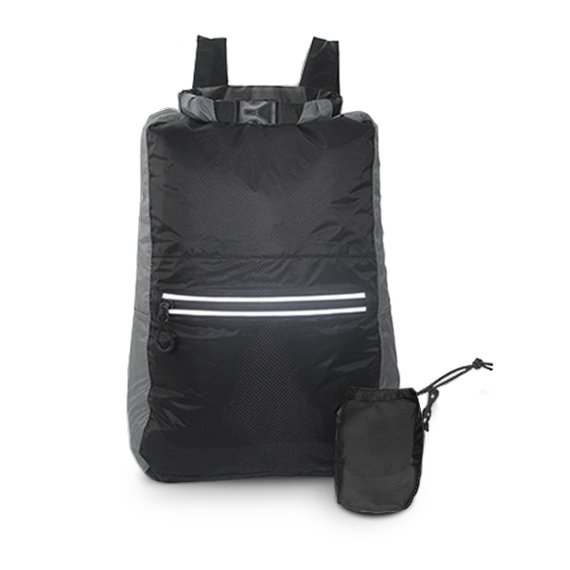 Vesitiivis reppu rPET-materiaalista pelastaa päivän kaupungilla ja matkoilla. Yhden repun valmistukseen on käytetty 3,3 pulloa (0,5 litran). Reppu taittuu pieneen tilaan ja se kulkee kätevästi mukana omassa pienessä kuljetuspussissaan, vaikka päivittäin. Kun teet yllättäviä löytöjä tai hankit tuliaisia, repusta saat heti kantoavun. Reppu on vedenpitävä, joten sääolosuhteistakaan ei tarvitse huolehtia. Kevyessä repussa on säädettävät olkahihnat, repun edessä on erillinen vetoketjullinen tasku ja reppu suljetaan vesitiiviiksi rullaamalla ja soljella kiinnittämällä. Repun etupuolen vetoketjussa on myös heijastavaa materiaalia lisäämään turvaa kaupungilla kulkemiseen. Tilavuus 15 litraa. 300D ripstop rPET polyesteri.
