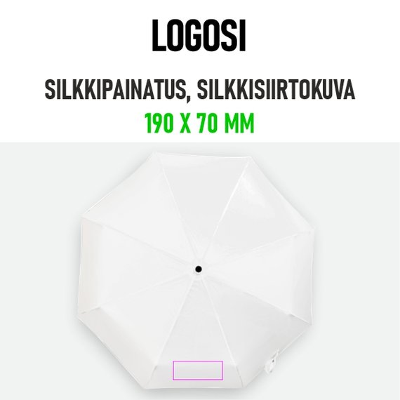 Varaudu muuttuviin sääolosuhteisiin kestävällä ja pieneen tilaan taittuvalla sateenvarjolla. Varjon reunaa kiertää heijastava nauha, joka takaa näkyvyytesi pimeässä. Hopeanväriset yksityiskohdat viimeistelevät varjon. Koko 21". Varjo sisältää pienen säilytyspussin.