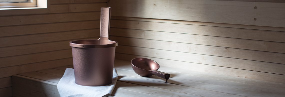 Luo saunaan tunnelmaa kuparinvärisellä saunakauhalla. Muovinen saunakauha on kestävä ja sopii hyvin niin mökille kuin kotiinkin.