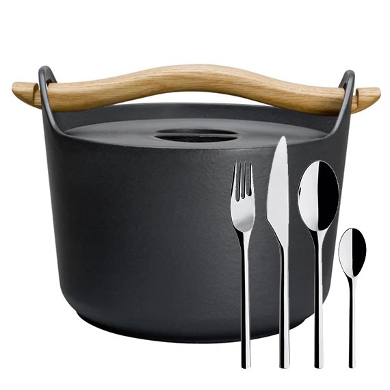 Muotoilija Timo Sarpanevan selkeälinjainen ja käytännöllinen pata edustaa modernia skandinaavista käyttöesinemuotoilua parhaimmillaan. Irrotettavalla puukahvalla varustettu jykevä valurautapata Kiiltävästä ruostumattomasta teräksestä valmistetun aterimen pinta ei tummu eikä siihen jää vesitäpliä. Jokainen osa on tukeva ja tasapainoinen. 24-osaiseen Artik-lahjapakkaukseen kuuluu: 6 veistä, 6 haarukkaa, 6 ruokalusikkaa ja 6 kahvilusikkaa.