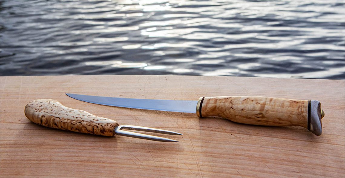 Kotimainen, Lapissa käsityönä valmistettu setti. Filettiveitsen terä on ruostumatonta terästä ja sen pituus on 16 cm. Kahva on visakoivua ja sen päässä on uniikki poronsarvesta valmistettu yksityiskohta. Kalapiikin terät ruostumatonta terästä ja kahva visakoivua. Setti sisältää ikkunallisen lahjapakkauksen, jonka mitat ovat 34 x 11 x 5 cm.
