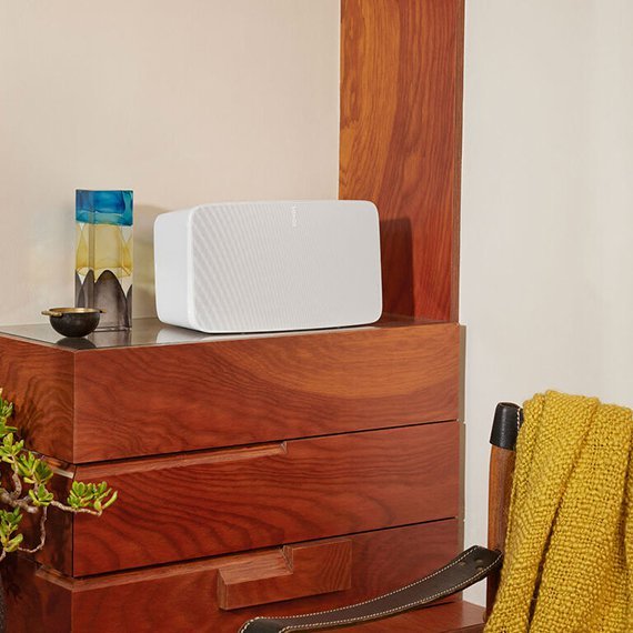Nauti korkealaatuisesta musiikista Sonos Five -älykaiuttimella. Trueplay säätää äänen soveltumaan täydellisesti huoneeseen. Kuuntele musiikkia mistä tahansa lähteestä langallisen ja langattoman liitäntävaihtoehdon ansiosta.