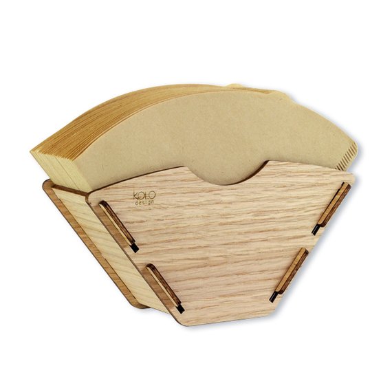 Tammivanerista valmistettu KOLO Designin suodatinpussiteline on kaunis ja käytännöllinen sisustuselementti, jonka voit ripustaa seinälle tai jättää pöydälle. Teline pitää suodatinpussit järjestyksessä ja helposti käytettävissä. Telineeseen mahtuu noin 100 suodatinpussia. Tuote on helposti postitettava, sillä pakatun tuotteen koko on vain 180 mm x 93 mm x 10 mm. Paino 100 g.
