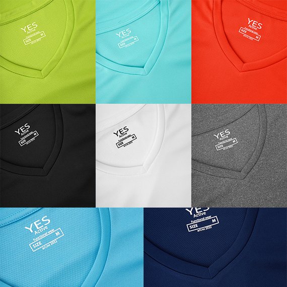 Naisten käytännöllinen t-paita V-aukolla urheiluun. Kosteutta läpäisevä, hengittävä ja nopeasti kuivuva materiaali. Materiaali 100% polyesteri. 130 g/m². Koot XS-3XL. OEKO TEX sertifioitu.