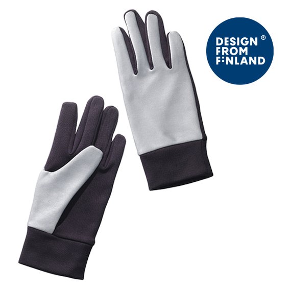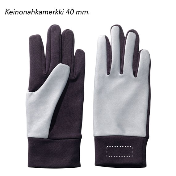 Astetta kevyemmät heijastavat hanskat sopivat yhtä hyvin kaupunkiympäristöön kuin ulkoiluharrastuksiin. Hanskojen selkäpuolen elastinen heijastava materiaali erottuu kirkkaasti pimeässä. Hanskoja ei tarvitse riisua, kun haluat näppäillä viestin tai vastata puhelimeen. Etusormessa ja peukalossa on erikoispinta, jolla voit käyttää kosketusnäyttöä. Pehmeät vuorettomat hanskat ovat erinomaiset kaupungilla, lenkillä tai vaikka pyöräillessä. Musta kämmenpuolen materiaali 5 % spandexia, 95 % polyesteriä.