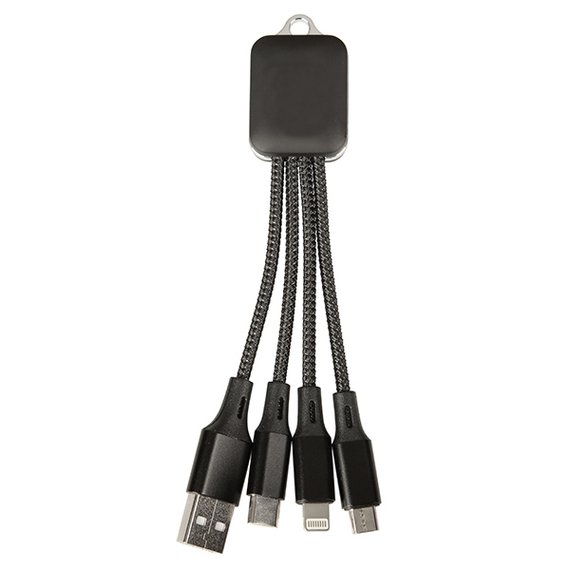 Loistava logopaikka löytyy tämän latauskaapelin liitoskohdasta. Kun liitoskohtaan tehdään kaiverrus, kuoren alla olevat valot pääsevät loistamaan ja antavat logolle ja viestille valovoimaisen lisäpotkun. Väri: Musta. Pituus 14 cm. Latauskaapelissa on USB-liitin, C-type, micro USB ja Apple lightning -liitin. Hinnat sisältävät logokaiverruksen tehdastoteutuksena.