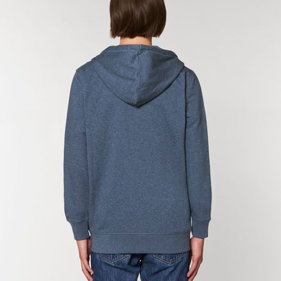 Huppari vetoketjulla kierrätetystä polyesteristä (15%) ja orgaanisesta, rengaskehrätystä kampapuuvillasta (85%). Hupparin hupussa kiristysnauhat sekä edessä taskut. Joustinneuletta hihansuissa ja helmassa. Paino 300 g/m². Koot XXS-4XL.