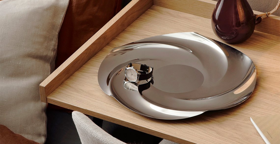 Ruostumattomasta teräksestä valmistettu tarjoiluvati toistaa kauniisti kuohuvien koskien muotokieltä. Ajaton muotoilu tuo kotiin kauniin tunnelman. Tarjoiluvadin on suunnittelut Heikki Hartikainen. Tuotteet valmistetaan Suomessa. Koko: Ø369 mm.