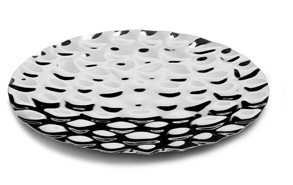 Ruostumattomasta teräksestä valmistettu tarjoiluvati sai inspiraationsa pisaroiden tanssista veden pinnalla. Tarjoiluvadin on suunnittelut Heikki Hartikainen. Tuotteet valmistetaan Suomessa. Koko: Ø375 mm.