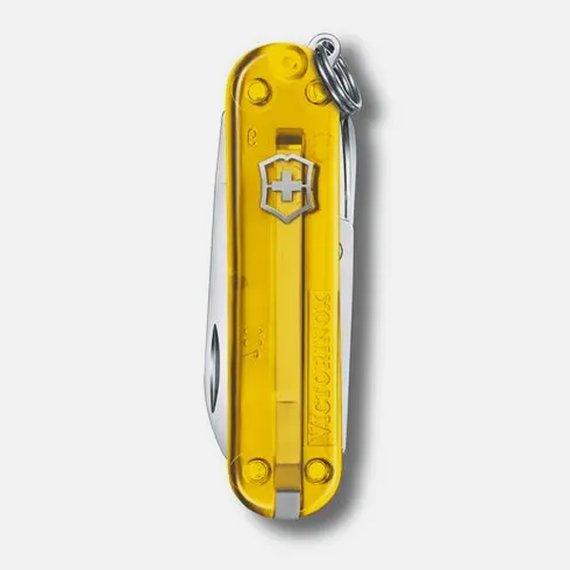 Sveitsissä valmistetun laadukkaan ja aidon Victorinox-linkkuveitsen voi nyt ostaa pirteissä väreissä. Linkkuveitsi sisältää seitsemän eri toimintoa: pieni terä, sakset, kynsiviila, ruuvimeisseli (2,5 mm) ja avaimenperä, hammastikku ja pinsetit. Pituus 58 mm ja paino vain 21 grammaa.Kysy lisää värivaihtoehdoista.