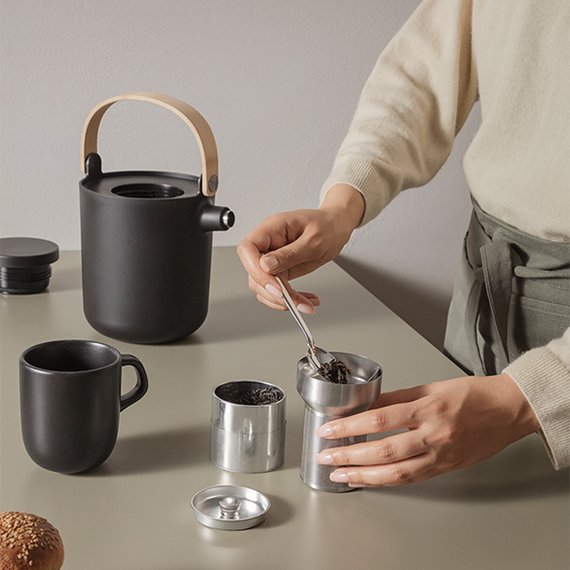 Eva Solon modernissa Nordic Kitchen kannussa on integroitu teenhaudutin, joka mahdollistaa teen valmistamisen suoraan termoskannuun. Muotoilu on saanut inspiraationsa teepannusta, joka erottaa sen helposti kahvitermoksesta. Eva Sololle tyypilliseen tapaan upea ulkonäkö yhdistyy jälleen huippuluokan funktionaalisuuteen; kaadin hauduttaa teen kätevästi suoraan kaatimeen ja teräksinen sisäosa pitää juoman kuumana pitkään. Teenhaudutin on helppo nostaa kannusta pois teen valmistuttua. Termoskaatimessa on 100 % tipaton kaatonokka, sekä kaatonokassa filtteri. Bambukahvan avulla kaadinta on helppo käyttää, kahvan voi taittaa alas tai jättää pystyyn. Valmistettu ruostumattomasta teräksestä. Käyttöohje: Suosittelemme bambukahvan säännöllistä öljyämistä.