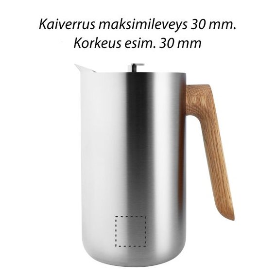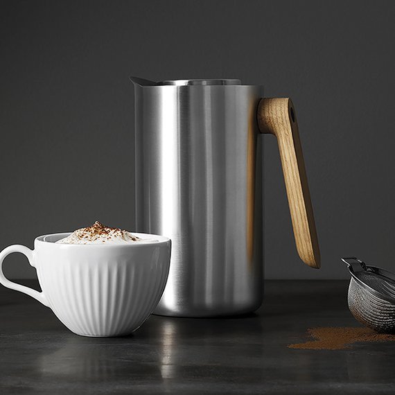 Minimalistista kauneutta ja taattua käytännöllisyyttä! Eva Solon termoskannu pitää juoman lämpimänä tai kylmänä pidempään eristävän rakenteensa ansiosta. Kannun muotoilu on pohjoismaisen yksinkertaista, jossa ruostumaton teräs kohtaa tammipuisen kahvan. Kannun koko: korkeus 19,6 cm ja halkaisija 11,7 cm, tilavuus 1 litra.