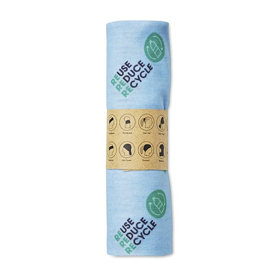 Kätevä tuubihuivi taipuu moneksi. Sitä voi käyttää kaulahuivina, hikinauhana tai hiuspantana, jolloin se pääsee käyttöön ympäri vuoden. Tuubihuivi on valmistettu kierrätetystä PET-muovista ja sen ympärillä on ekologinen paperivyöte. Huivin koko 50 x 25 cm, 100% rpet 140 gsm. Hinnat sisältävät moniväripainatuksen aloituskuluineen.