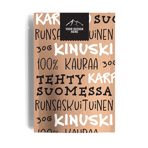Elovenan hyvänmakuiset ja kätevästi yksittäispakatut välipalakeksit kulkevat helposti mukana. 30g. Saatavissa olevat maut: appelsiini-suklaa, tumma suklaa, siemenet & merisuola, juusto, uuniomena-toffee, karpalo-kinuski, mustikka-valkosuklaa, mansikkaraparperi, hedelmä, puolukka. Minimi 100 kpl. Tuotteen säilyvyysaika on 304 vuorokautta. Tuotteen mitat 115 x 150 mm. Toimitusaika n. 4 viikkoa.
