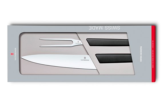 Klassinen ja juhlava leikkuuveitsi- ja haarukka ovat taattua Victorinox-laatua. Sveitsiläisestä ruostumattomasta teräksestä valmistetut työvälineet tekevät lihan ja paistin leikkaamisesta taidetta. Välineissä on synteettiset kahvat, jotka takaavat tukevan ja pitävän otteen. Veitsi 22 cm ja haarukka 15 cm. Elinikäinen valmistustakuu.